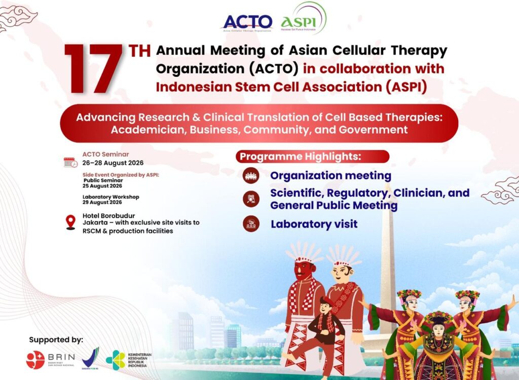 The 17th Annual Meeting of Asian Cellular Therapy Organization (ACTO) will be held on August 26-28 in 2026 at Jakarta.